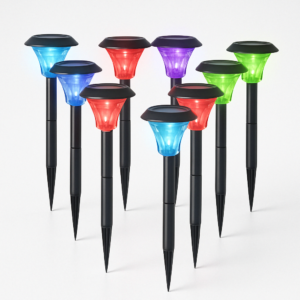 Halo Black Solar Garden Stake Lights – Set of 8 with Colour-Changing LED